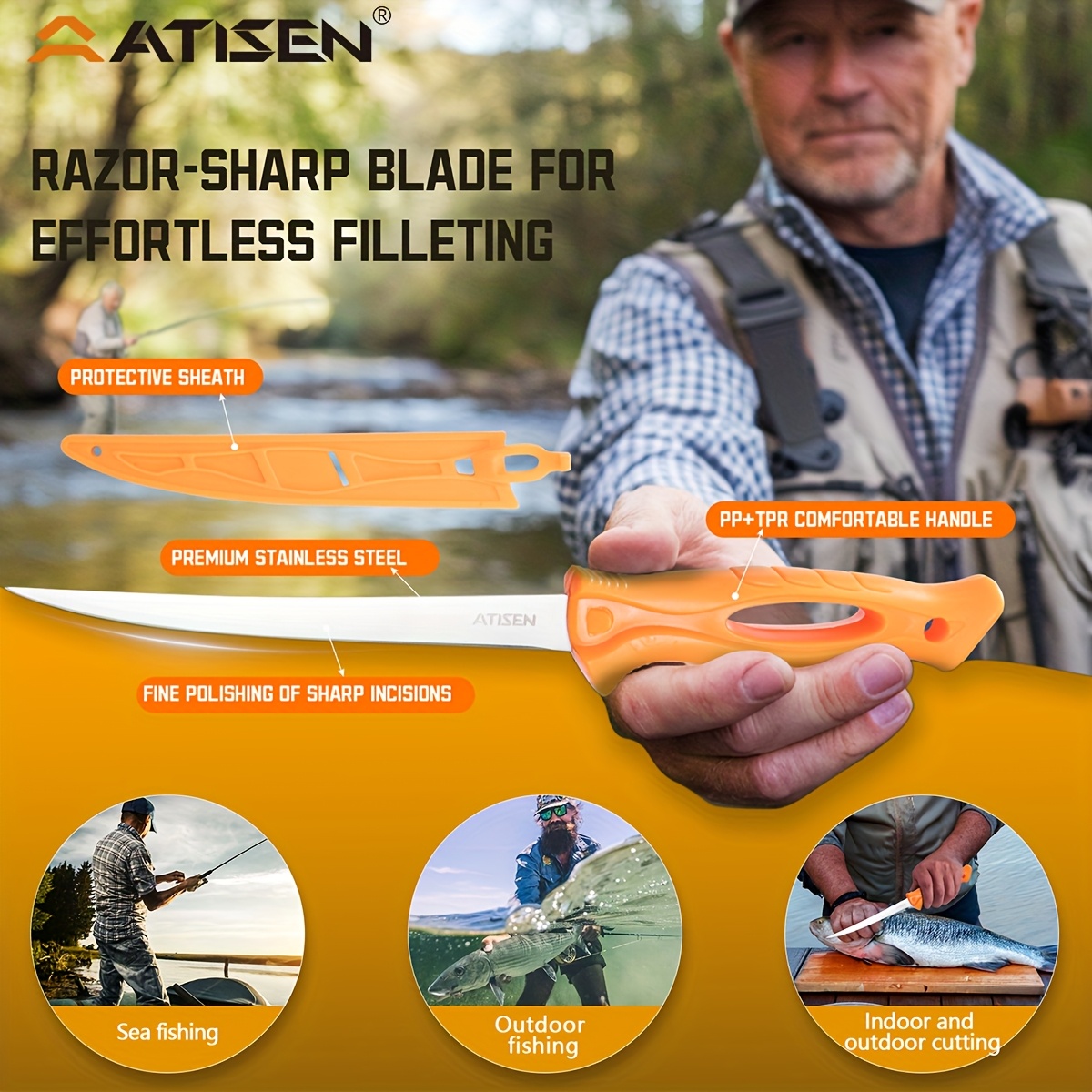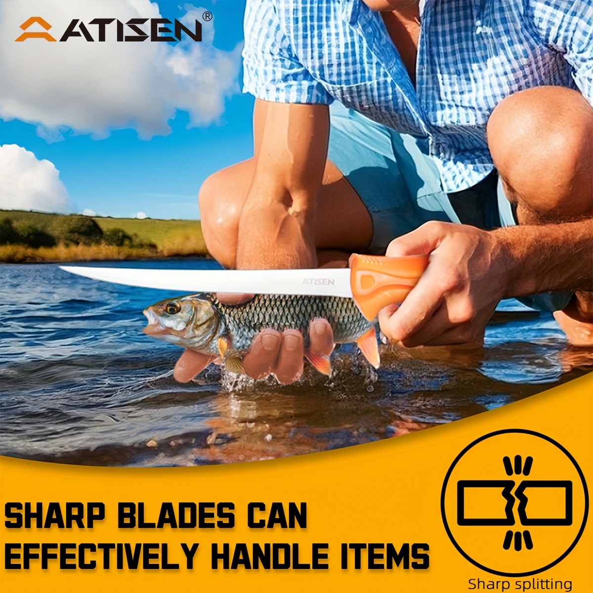 Still have your hands full with post-fishing tasks?This ATISEN Orange Fish Knife Set is designed for anglers, a one-stop solution for all kinds of needs!