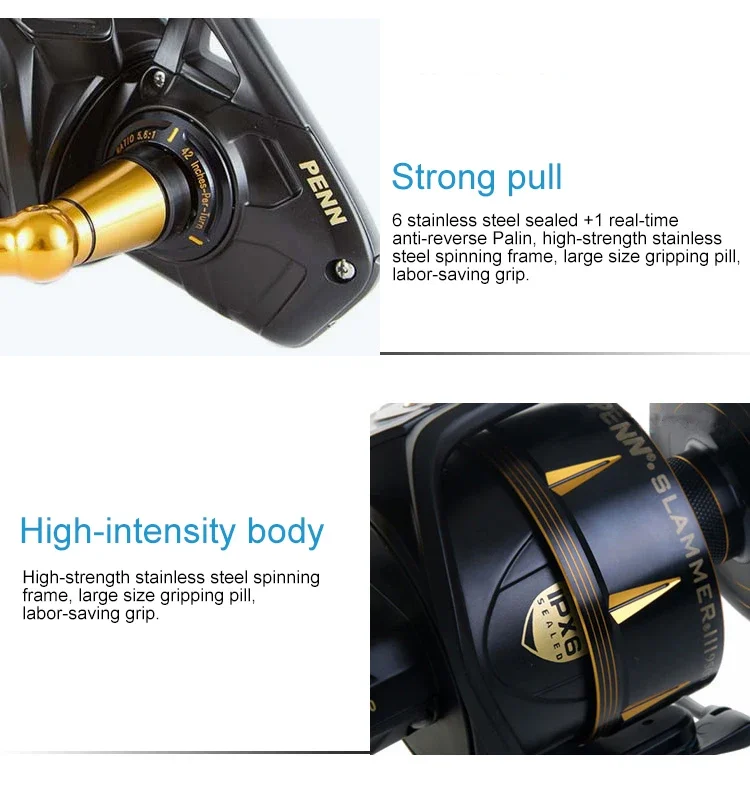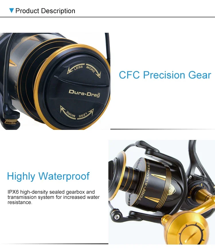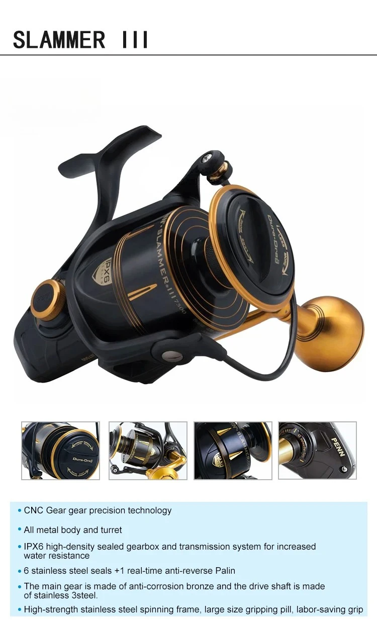 PENN SLAMMER III SLAIII 3500-10500 Spinning Fishing Reel 6+1BB Full Metal Body CNC Gear IPX6 Sealed Saltwater Reels
