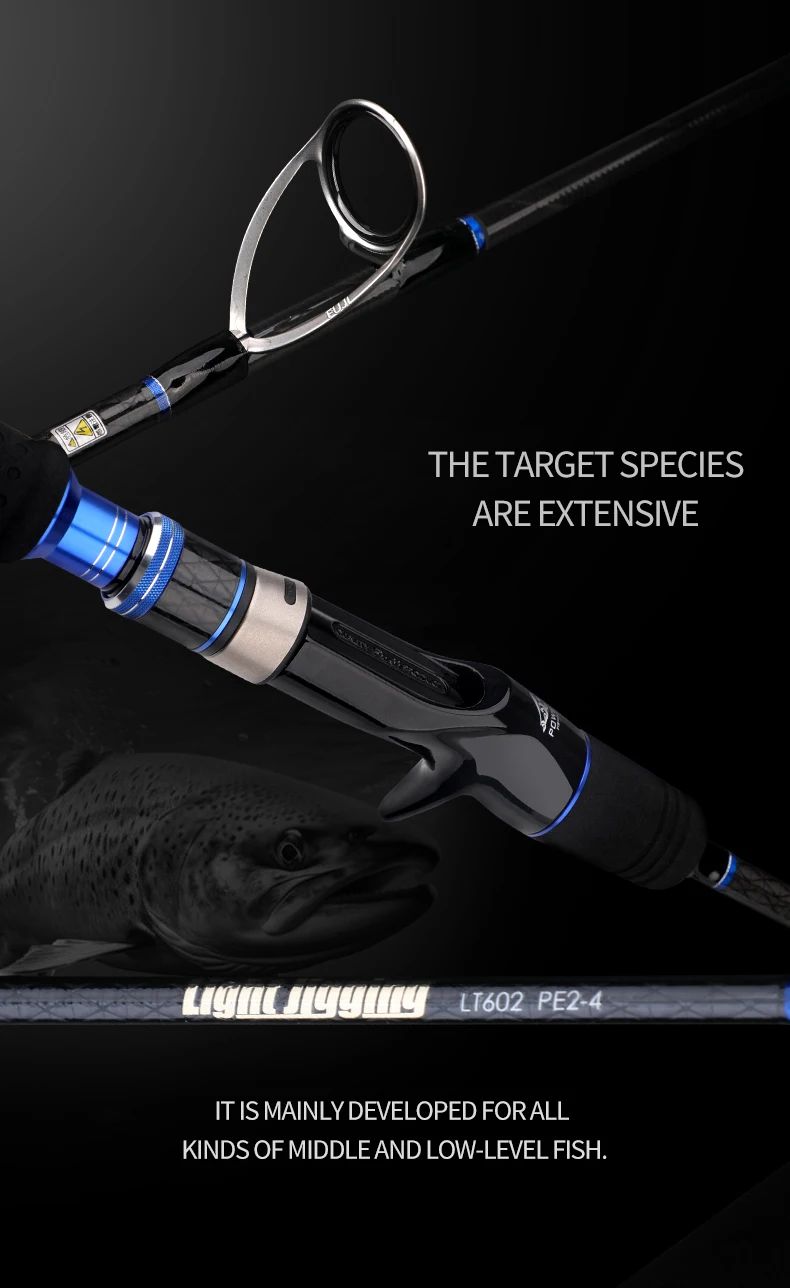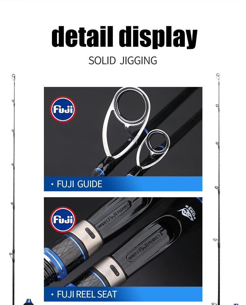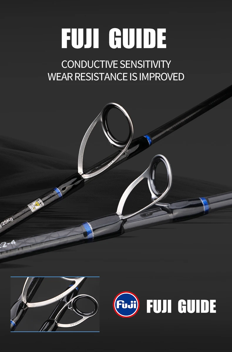 ROLLFISH Premium 2-Section Carbon Fiber Fast Jigging Rod Saltwater Deep Sea Tuna Bass Fishing Fuji Guides&Fuji Reel Seat